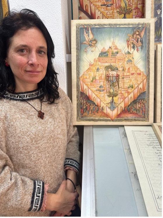 María Ruiz, iconographer of the Latin Patriarchate, came to iconography as a spiritual journey that gradually became her vocation. “I approached iconography 23 years ago, in a search for a form of prayer that could unify all the levels of my person. Every time I take up the brush, my dialogue with Jesus begins.” Reflecting on sacred art, she adds: “ Art and icons are, matter; therefore, they are not a denial of the goodness of creation or of the goodness of bodies. On the contrary, they are a divinization, a synergy between the divine and the human”.