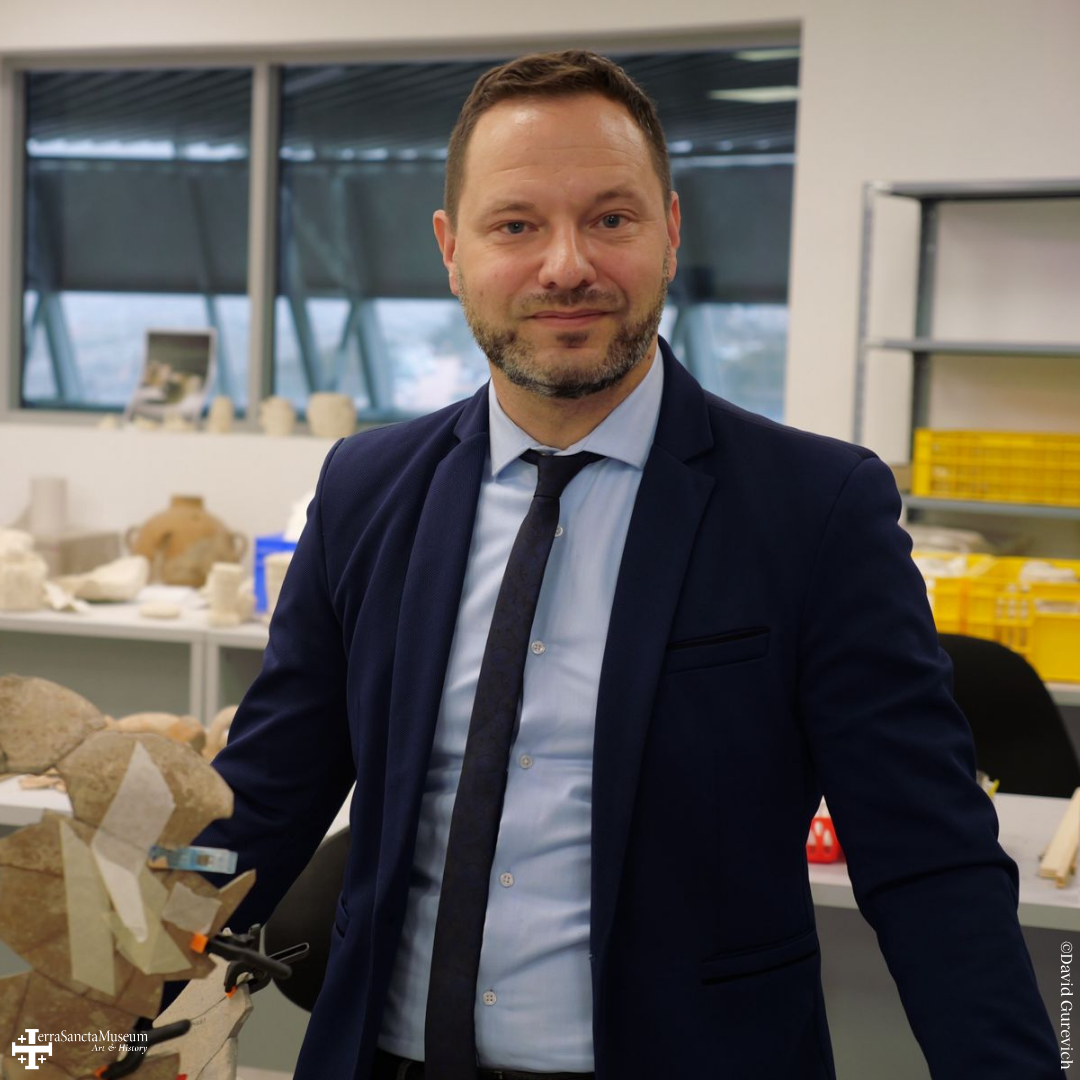 David Gurevich is the director of the Institute of Archaeology at Ariel University. He loves fascinating discoveries in Jerusalem. A licensed tour guide for over 20 years, he discovered the Terra Sancta Museum-SBF Archaeological Museum through his professional network. From now on, he regularly accompanies groups of enthusiasts, students, and scholars through the museum’s collections. We sat down with him for an interview to understand one of the scientific contributions of the museum.